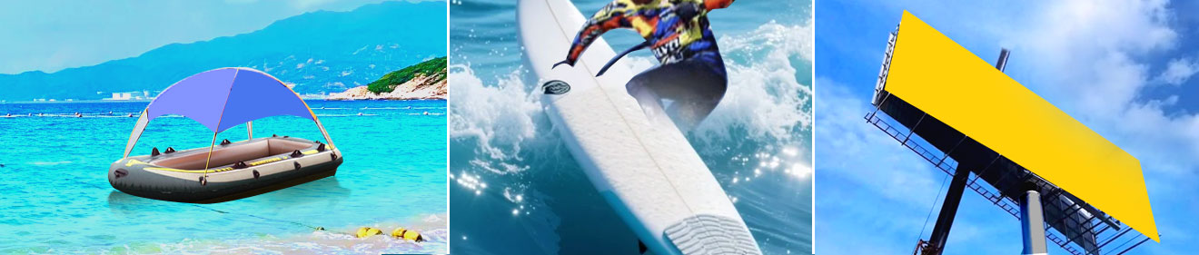 3. 养鱼池布和车船帐篷、冲浪板等。PVC刀刮布也常被用作养鱼池的覆盖材料和车船的帐篷布,以及冲浪板等。海宁市玄宇布业有限公司PVC刀刮布可以防止水体的蒸发和污染物的进入,保持水质的清洁和稳定。 4. 防护罩。PVC刀刮布还可用作覆盖机械设备、汽车、船只等的防护罩。玄宇布业PVC刀刮布具有防尘防雨和抗紫外线等功能;上海江苏浙江PVC刀刮布能够有效地保护被覆盖物免受外界环境的损害。 5.广告喷印物料。PVC刀刮布广泛应用于背景墙、装饰画、各类户外广告牌等场景。海宁市玄宇布业有限公司PVC刀刮布表面光滑,具有较强的吸墨力,能使喷绘画面色彩鲜艳并具有很高的清晰度。同时浙江上海江苏PVC刀刮布抗氧化、耐酸碱和耐严寒,能够确保广告画面在长时间内保持鲜艳和清晰。